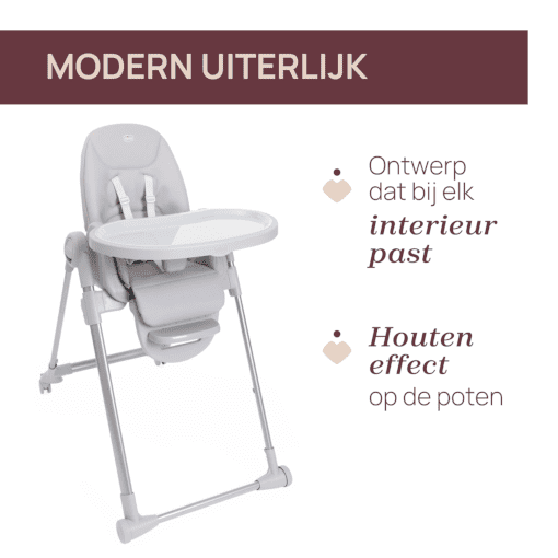 De stoel heeft een modern design dat perfect in je interieur past: de kinderstoel is verkrijgbaar in 6 exclusieve kleuren met een perfecte match tussen de stoelpoten en het zitkussen.