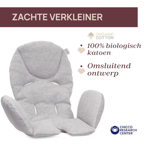 Een verkleiner is inbegrepen, gemaakt van 100% biologisch katoen voor maximaal comfort vanaf de geboorte.