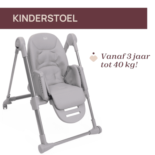 Geschikt vanaf de geboorte tot 40 kg. Een 3-in-1 product: wipstoel, kinderstoel en kinderstoel voor grotere kinderen.