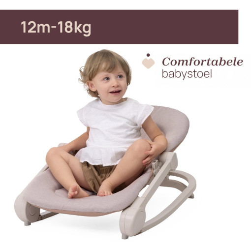 Of je nu even je handen vrij wilt hebben, je baby wilt laten spelen of rustig wilt laten ontspannen: deze wipstoel biedt altijd een fijne plek. Dankzij de natuurlijke beweging reageert de stoel op de bewegingen van je kindje, wat een vertrouwd en rustgevend gevoel geeft.