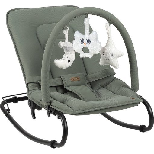 De Topmark wipstoel Jessy wordt geleverd met fraaie speelboog en heeft een anatomisch gevormd zitdeel met gepolsterde zijvlakken voor extra comfort. Daarnaast heeft de stoel antislip-vloerbeschermers, een traploos verstelbare rugleuning en voetensteun. Dankzij de schommelstand begint het stoeltje al te wiebelen bij een kleine beweging van je kindje. De bekleding van de Topmark Wipstoel Jessy (incl. Boog) is eenvoudig afneembaar en wasbaar in de wasmachine.